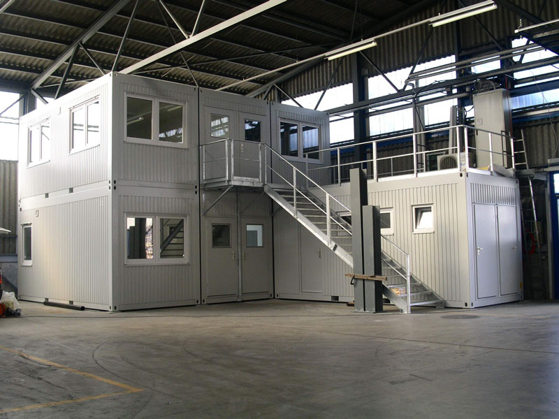 Büro-Container können als einzelne Container oder im Verbund aus mehreren Raumcontainern nebeneinander sowie mehrstöckig platziert werden, um notwendigen Raumbedarf vernünftig und schnell abzudecken. Die einzelnen Container sind zwischen 3 bis 12 Meter lang und haben eine Breite bis 3 Meter. Sie können in der Halle oder im Freien verwendet werden.