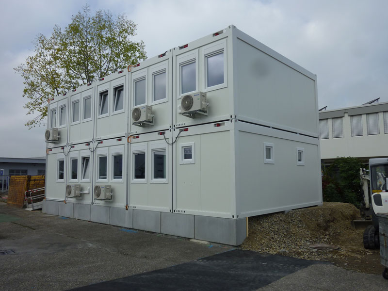 Die Containeranlagen können optimal als Übergangslösungen bei Umbau- und Sanierungsmassnahmen, Schulen und Kindergärten, Büro- und Sozialgebäude eingesetzt werden. Auf Wunsch erfüllen die Module spezifische Brandschutzauflagen und bieten dazu einen erhöhten Wärmeschutz. Ein verbesserter Schallschutz durch abgehangene Deckensysteme ist neben ansprechenden Wandverkleidungen ebenfalls möglich.